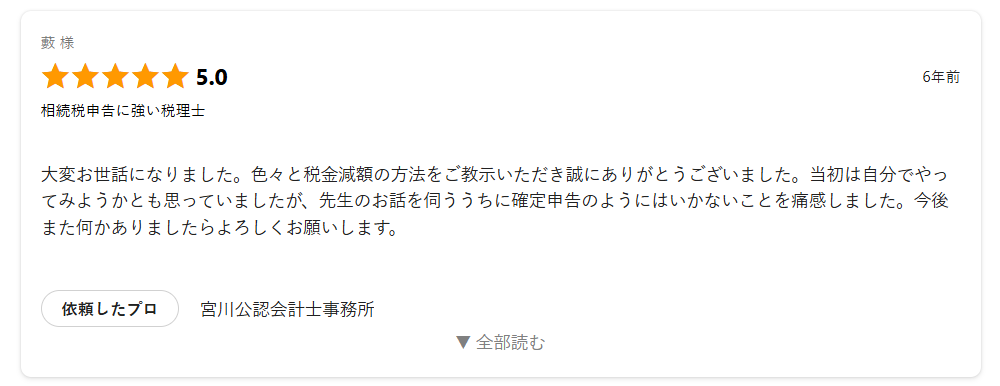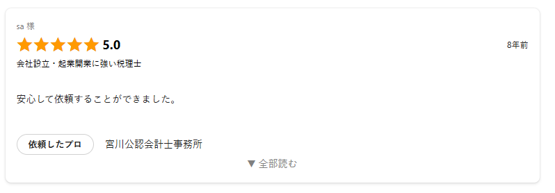 > 宮川公認会計士事務所の評判・口コミ(出典:ミツモア社ウェブサイトより抜粋)